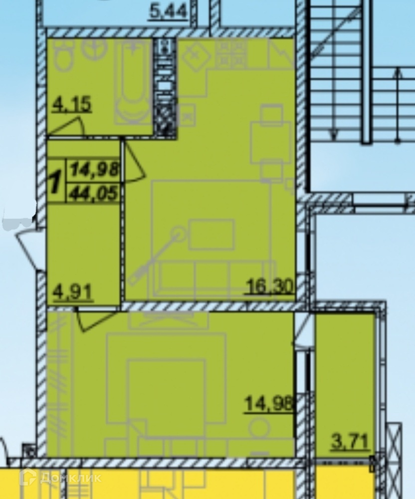 Общая площадь 44.05 м2