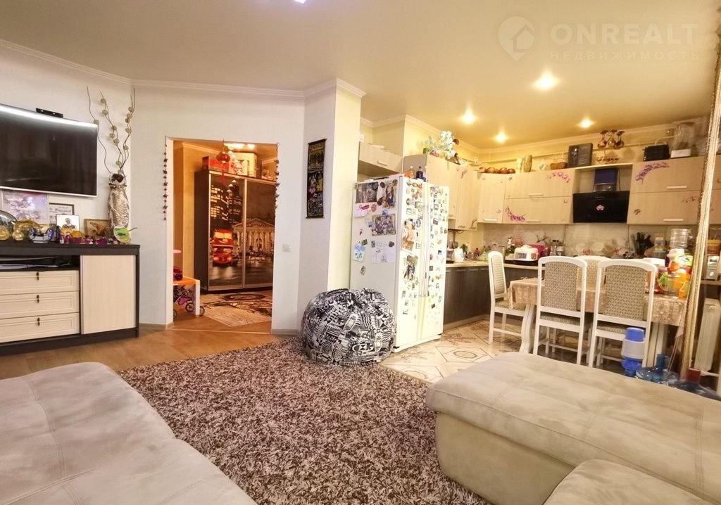 Просторная кухня-гостиная с выходом на остекленную лоджию.