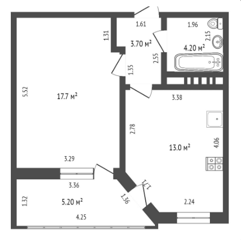 Жилая площадь 17.7 м2