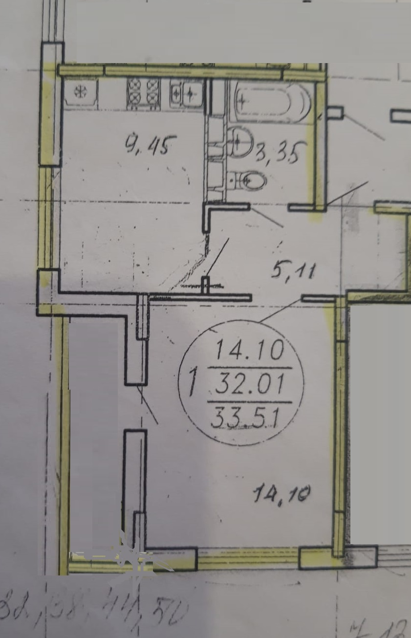 Общая площадь 38 м2