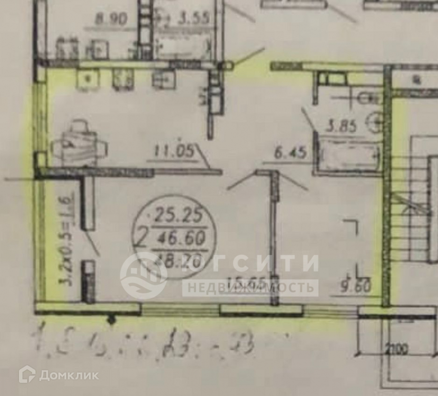 Общая площадь 52 м2