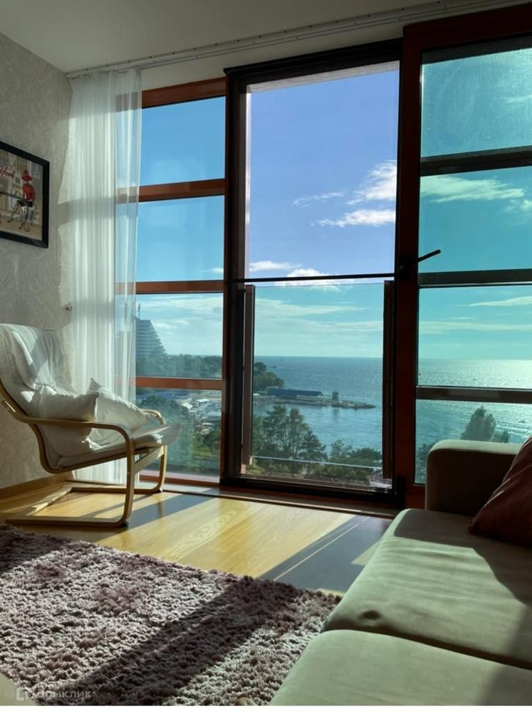 Квартира располагается на шестом этаже и имеет шикарные видовые характеристики. Прямой панорамный вид на море.