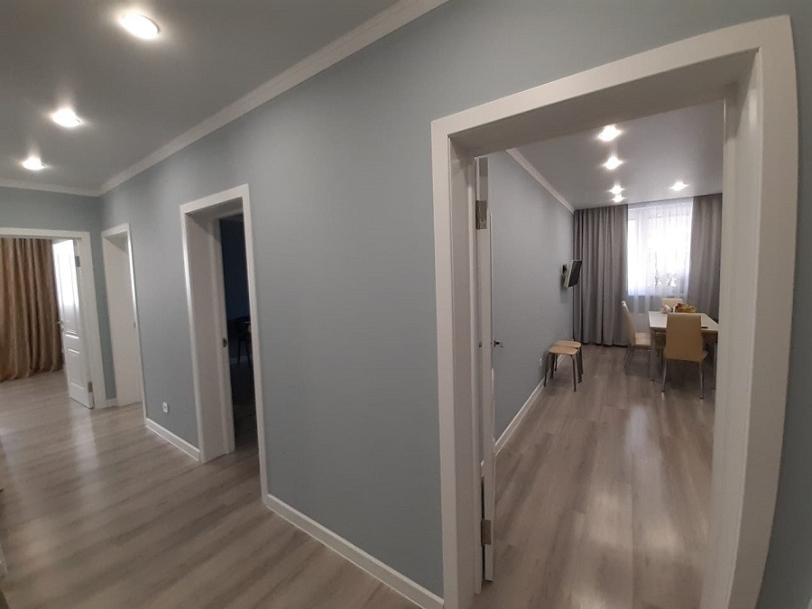 Красивая 3-комнатная квартира (три ОТДЕЛЬНЫХ комнаты) с большой кухней 17.5 кв.м. в новом современном доме в 3 мкр Анапы. Расположена на 4-м этаже (всего 16 этажей). Вид из окон во двор.