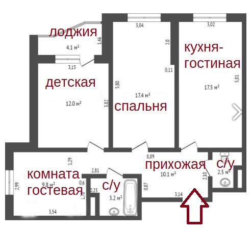 Высота потолков 2.8 м