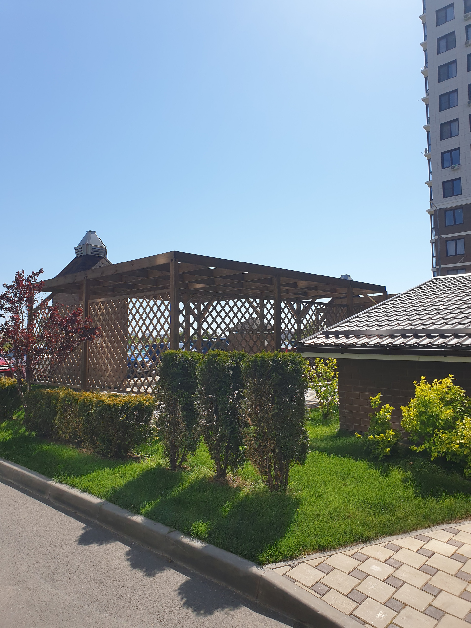 На территории современными детские площадки, скейт-парк, беседки для отдыха, мангальная зона,