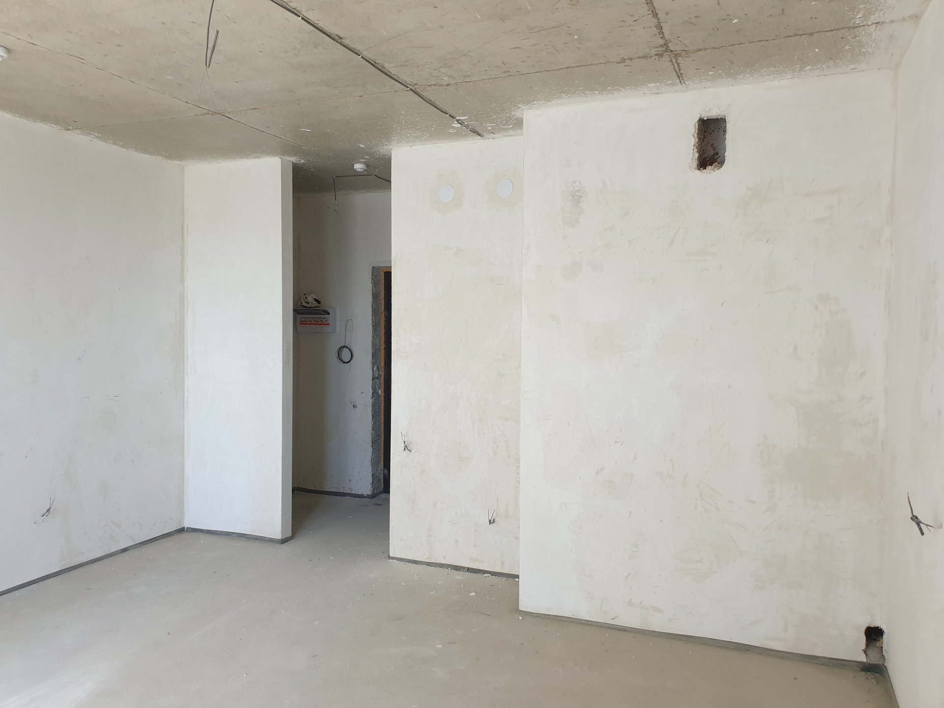 предчистовая отделка отличного качества. Стены оштукатурены, стяжка пола,электрика разведена по квартире, радиаторы установлены, все счетчики.