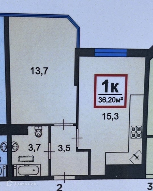 Общая площадь 36.2 м2