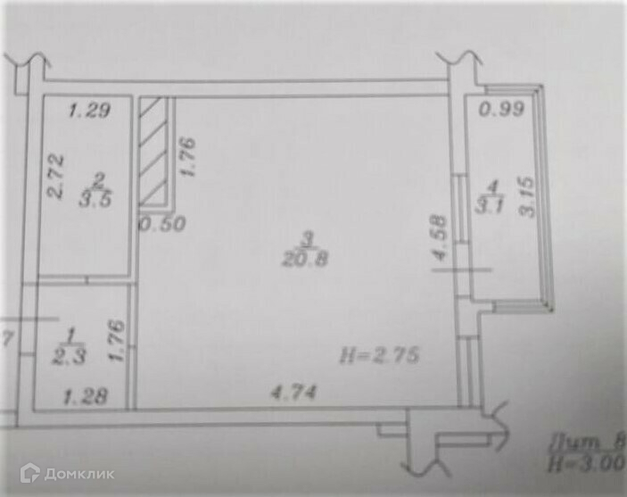 Высота потолков 2.8 м