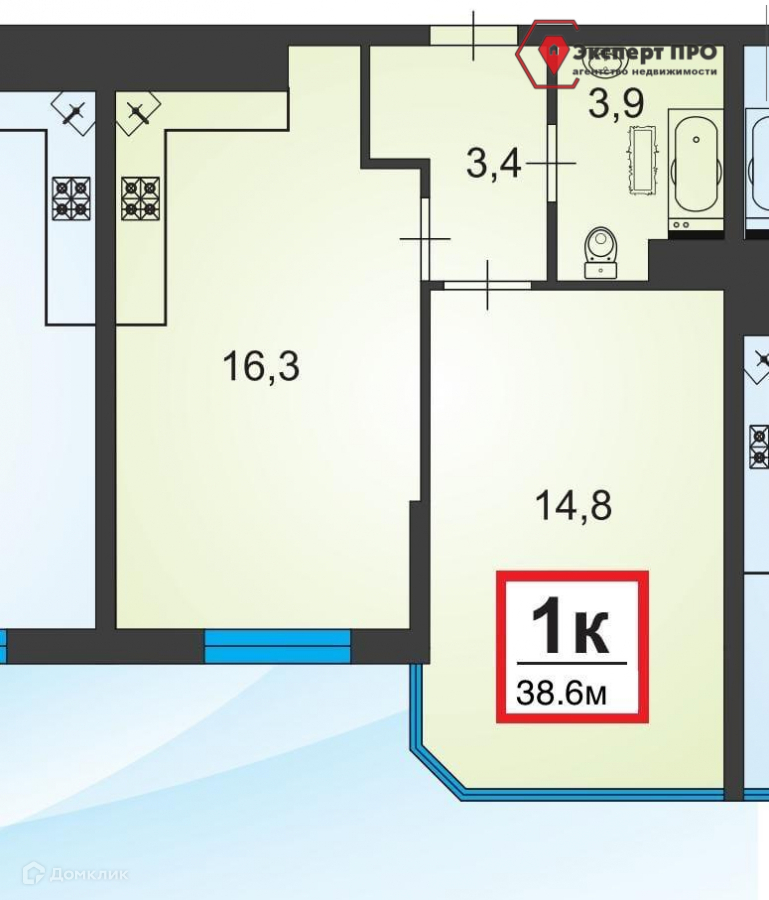 Общая площадь 38 м2
