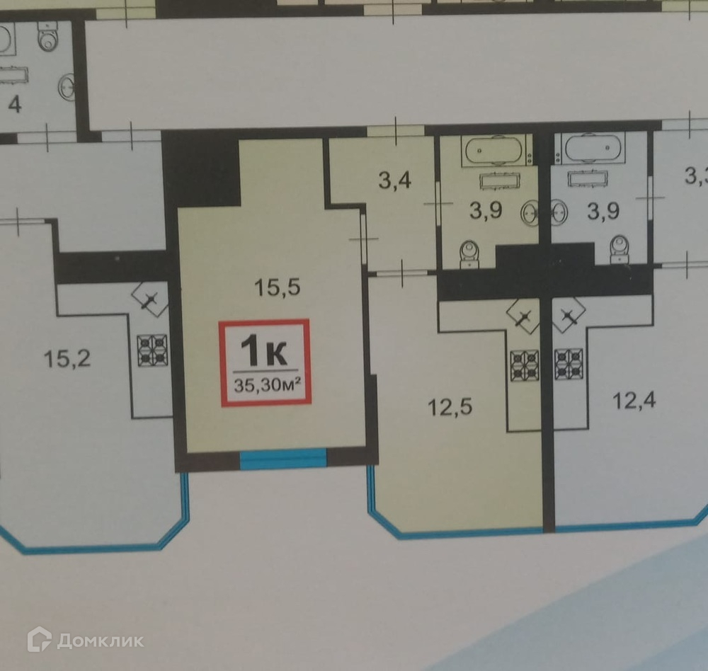 1-комнатная квартира, 36 м2, этаж 7 / 15, на продажу в Анапе, Анапское шоссе, 32к6