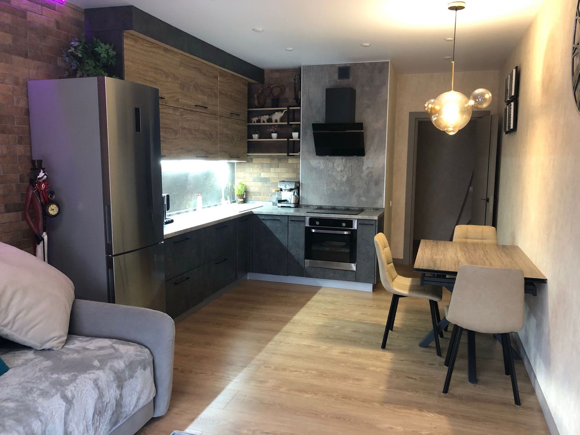 уютные зеленые зоны для барбекю с доступным Wi-Fi, детская и спортивная площадка с хорошим освещением, закрытый паркинг, въезд во двор осуществляется через массивную арку с раздвижными воротами, пункт охраны, по периметру видеонаблюдение. В квартире выполнен современный дизайнерский ремонт, установлена вся необходимая мебель и техника. Удобная планировка: кухня -гостиная, две комнаты, два санузла, гардеробная. Заведен домофон с видеосвязью и видеонаблюдением. Собственник.