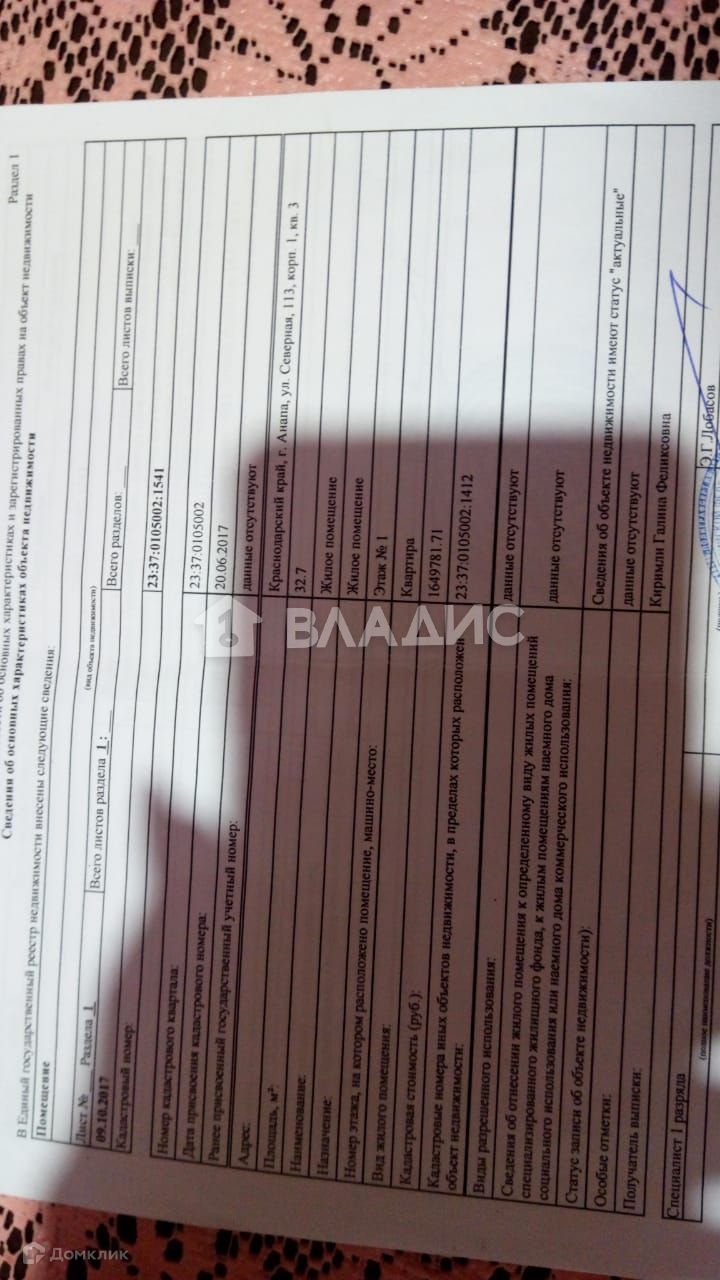 1-комнатная квартира, 35.3 м2, этаж 1 / 12, на продажу в Анапе, Северная улица, 113к1