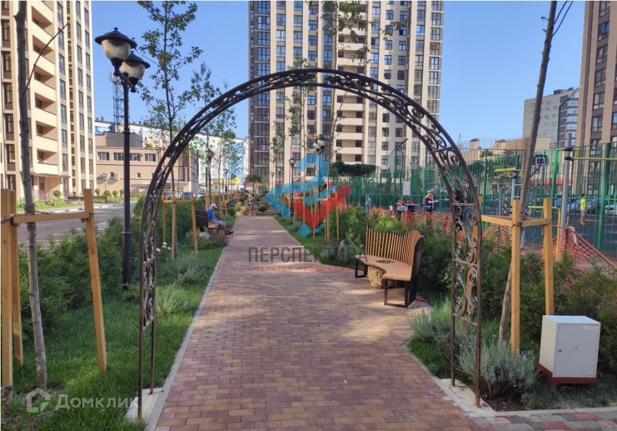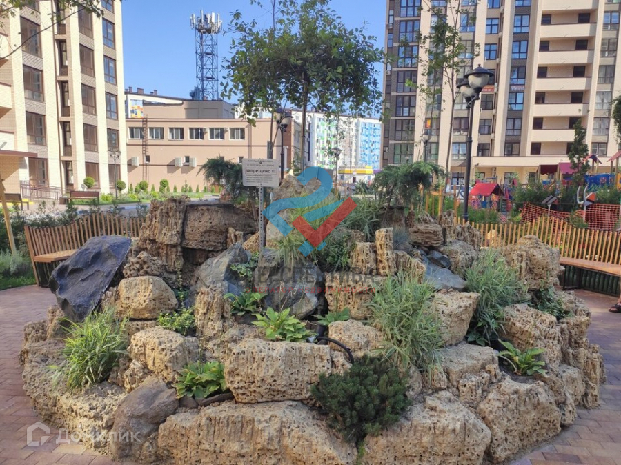 На территории имеется детская и спортивная площадка, просторная парковка, зона для отдыха с шикарным озеленением и живописным фонтаном,