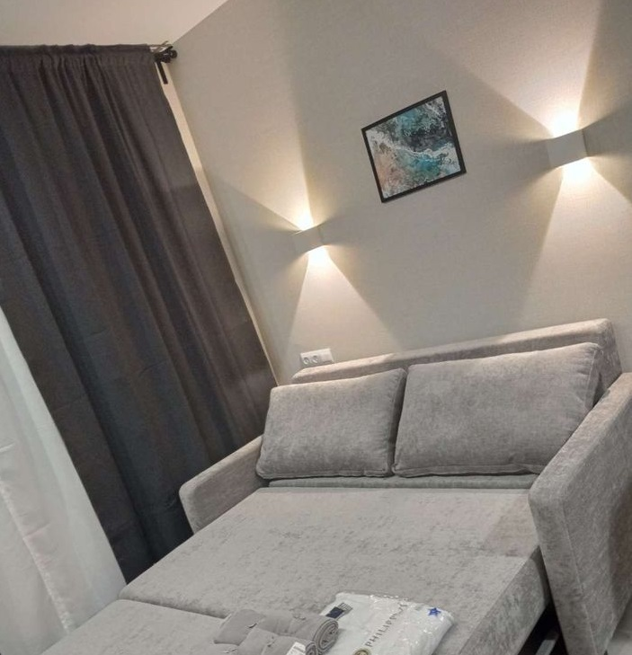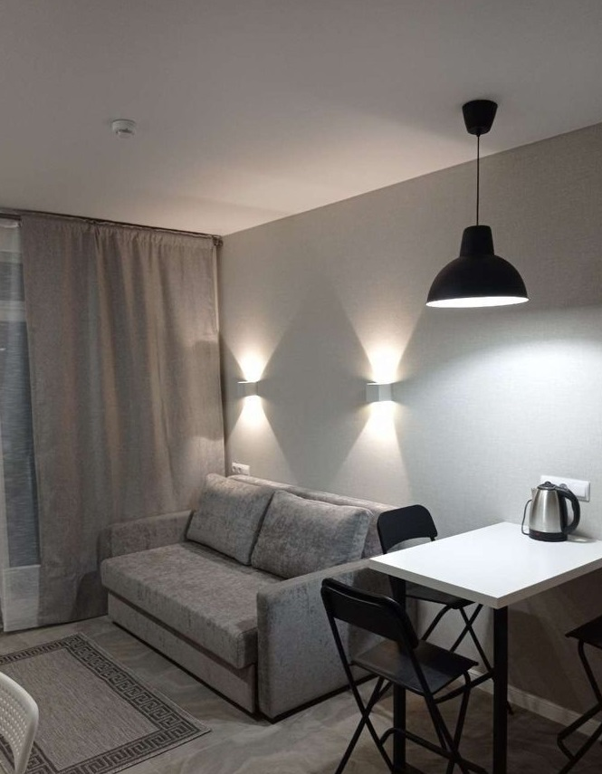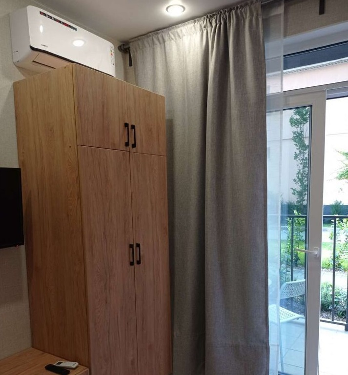 ID 5066    Апартаменты-студия (без прописки) в новом красивом доме на 1-м этаже. Общая площадь 23 кв.м., вид во двор. Евроремонт, сплит-система, мебель и бытовая техника - всё есть. Санузел с инсталляцией и душевой кабиной. Балкон открытый.