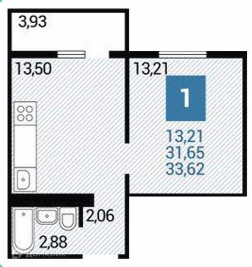 Общая площадь 33.61 м2