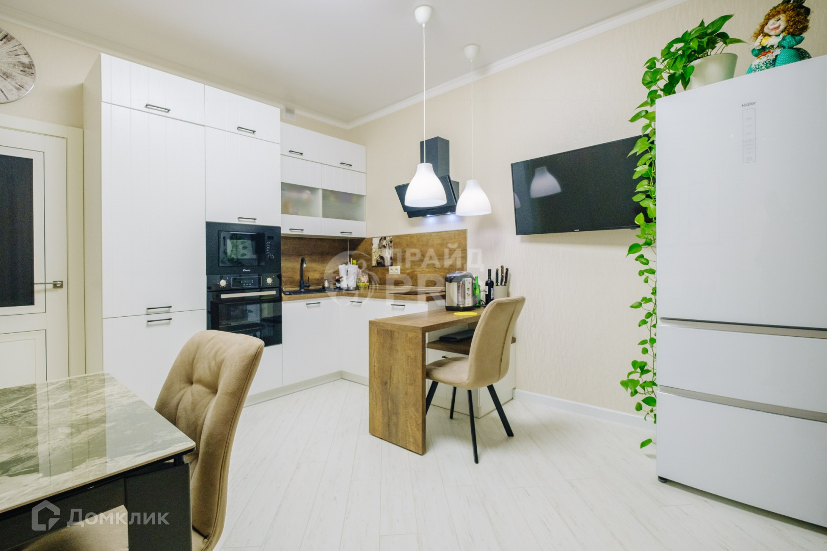 Ремонт безупречный - светлые тона, дорогая качественная мебель и текстиль, современная бытовая техника. Обстановка дополнена аксессуарами и умными гаджетами. В каждой комнате и на кухне - мощная сплит-система. Все окна в квартире защищены от солнечных лучей.