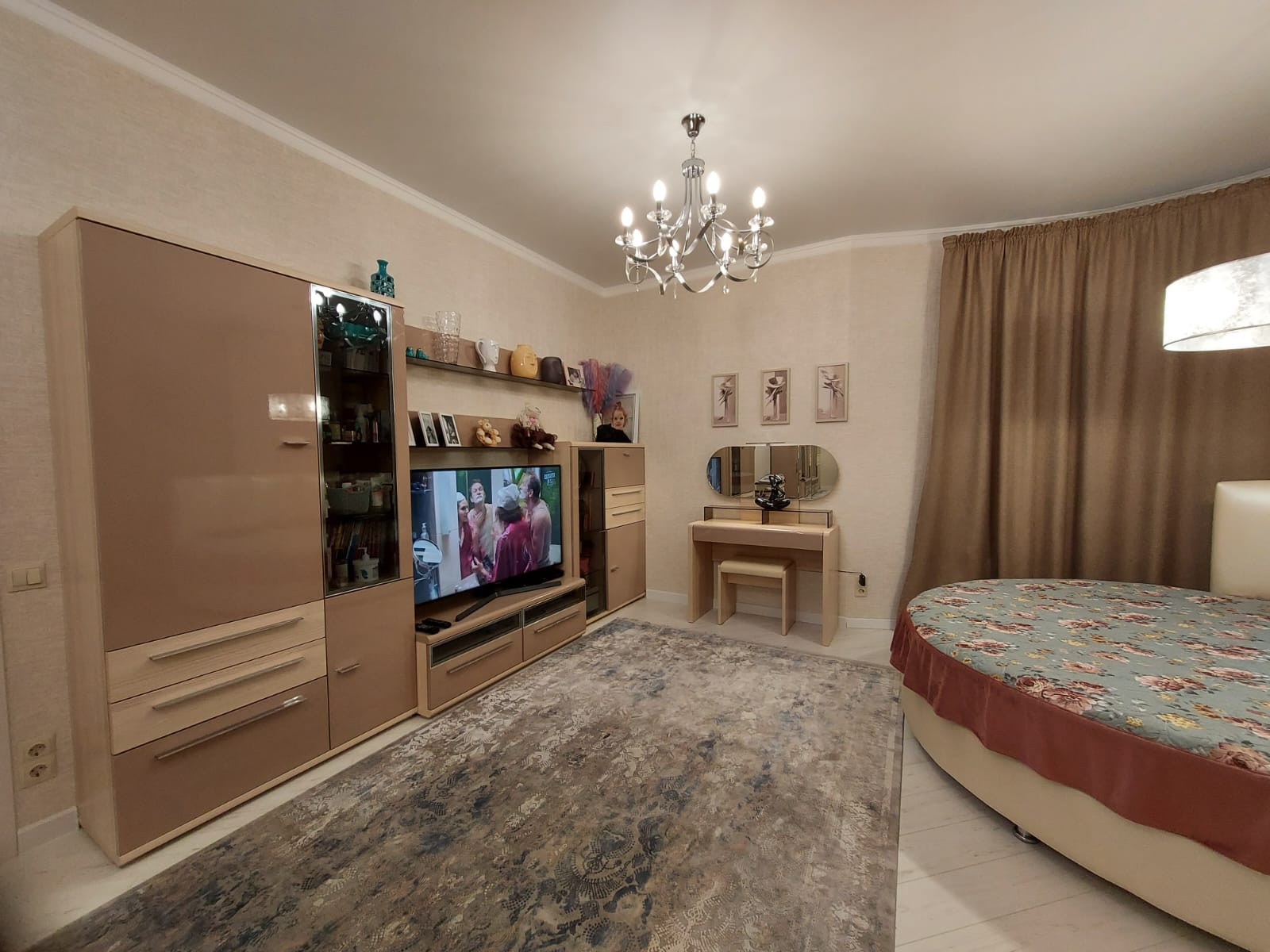 В квартире выполнен качественный дизайнерский ремонт - мебель "Лазурит" с подсветкой, три кондиционера, три больших телевизора.