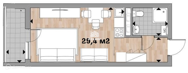 Общая площадь 29.4 м2