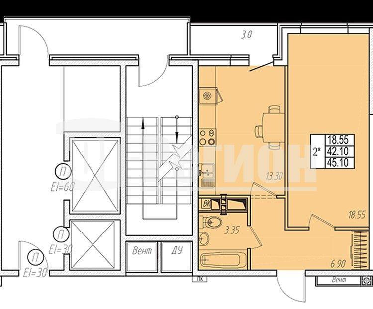 Общая площадь 45 м2