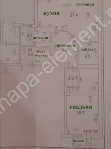 Площадь кухни 27.4 м2