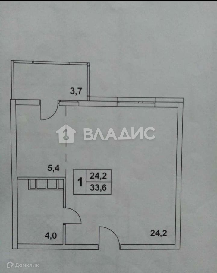 Жилая площадь 24.2 м2