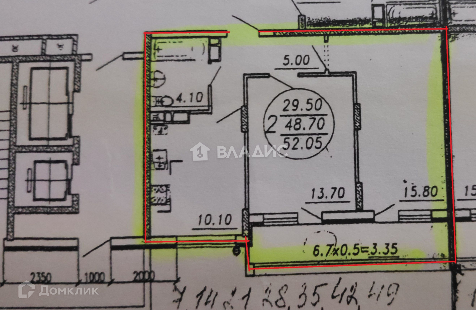 Общая площадь 52 м2