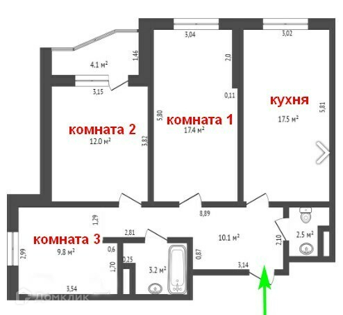 Количество комнат 3