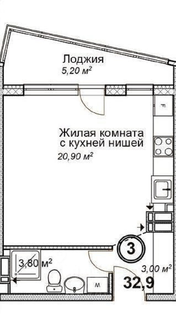 Общая площадь 33 м2