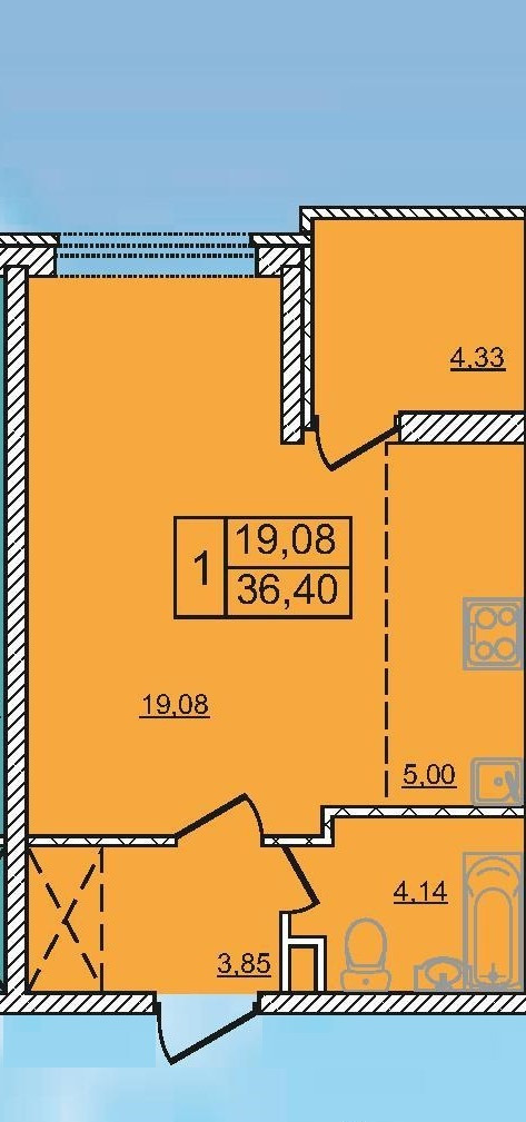 Общая площадь 36.3 м2