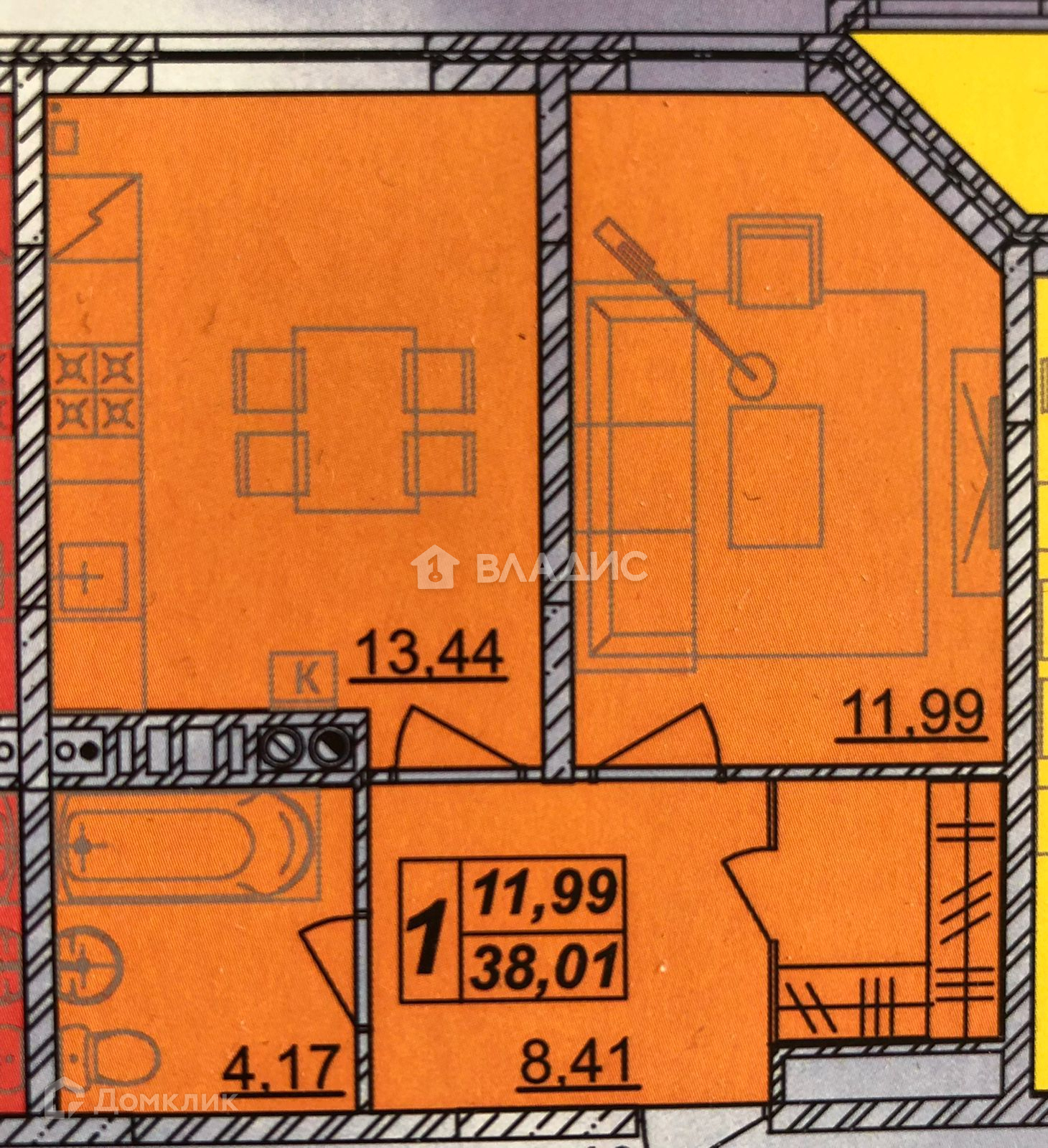 Общая площадь 38.4 м2