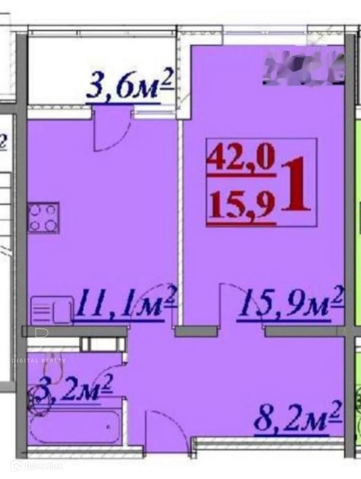Общая площадь 42 м2