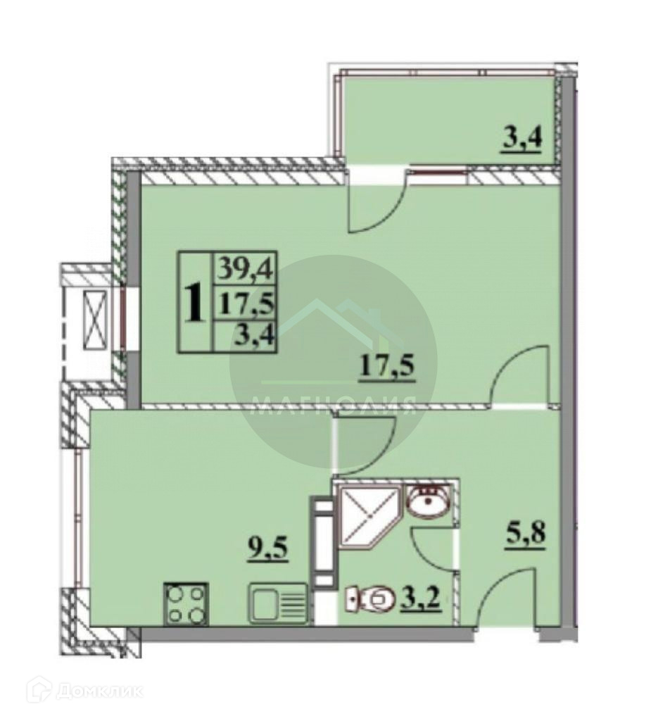 Общая площадь 39.4 м2