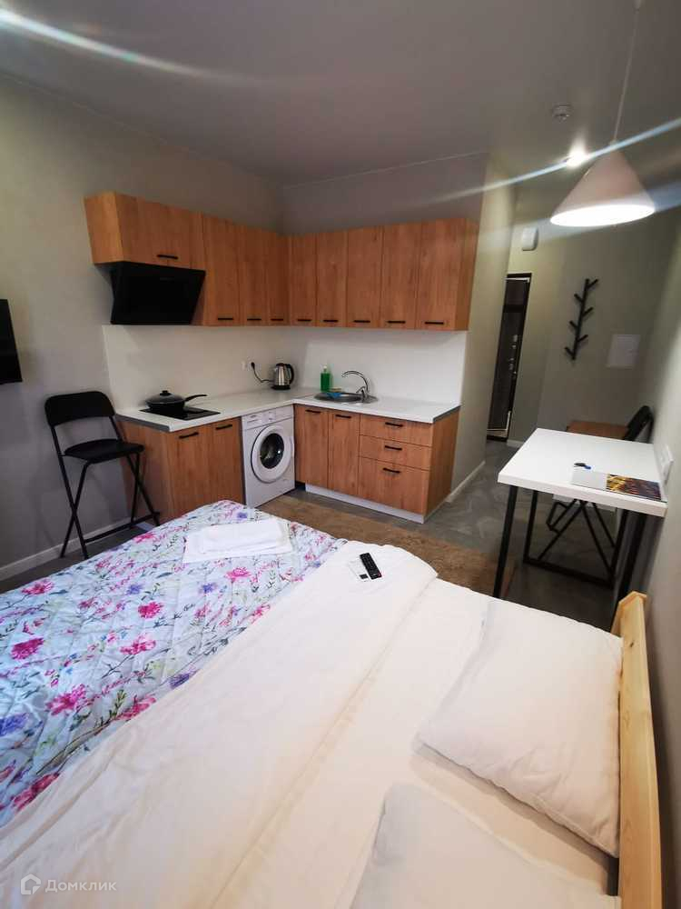 Объект №48307. Уютная студия в новом ЖК "Оазис". 1 этаж. Студия полностью укомплектована мебелью, техникой, посудой, постельными принадлежностями. Можно сразу заезжать и жить, либо сдавать в аренду. Новый комплекс, закрытая территория, парковка, детская и спортивная площадки,  зона барбекю,  охрана, видеонаблюдение.