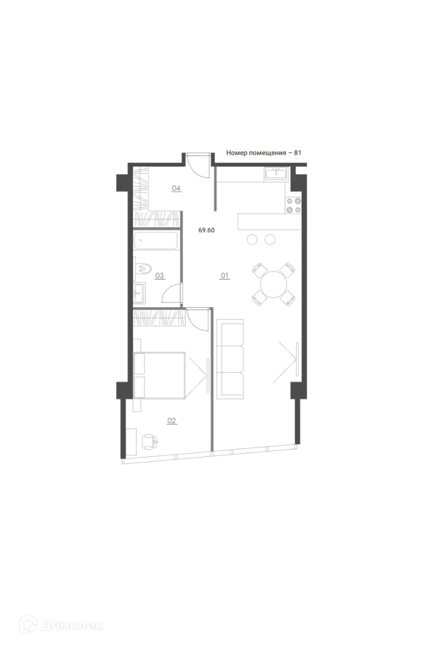 Общая площадь 69.6 м2