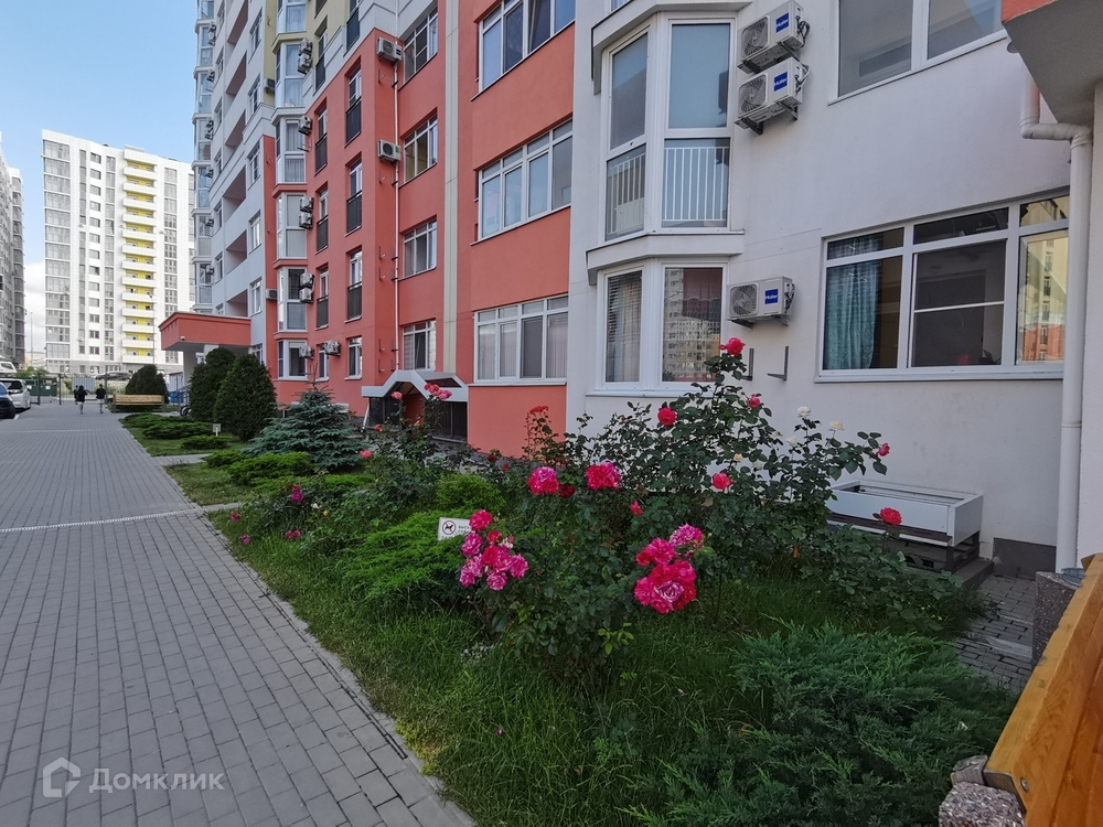 Квартира расположена в районе торгово-развлекательного центра "Красная площадь". Территория комплекса закрытая, озелененная - 1.4 га зелёных насаждений, детские площадки на разные возраста. Футбольная и баскетбольные площадки. Тренажеры на свежем воздухе. Доступ есть только у жильцов. Зона для отдыха. Собственный фитнес-центр World Class, детский и взрослый бассейны 25 м. Парковочная зона, видеонаблюдение 24/7. В ЖК есть супермаркет "Магнит", "Магнит Косметик", аптека, салоны красоты, различные продуктовые магазины, детские магазины. До ТРЦ "Красная площадь" 5 минут пешком. До моря 800 метров.