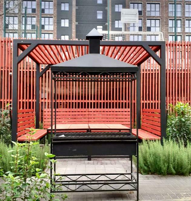 Во дворе комплекса шикарное озеленение, зона барбекю, зона для отдыха и прогулок.