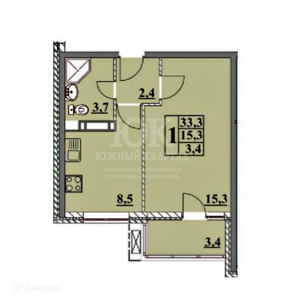 Общая площадь 33 м2
