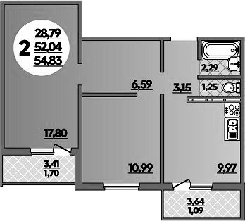 Сантехника: установлены унитаз, ванна, умывальник.