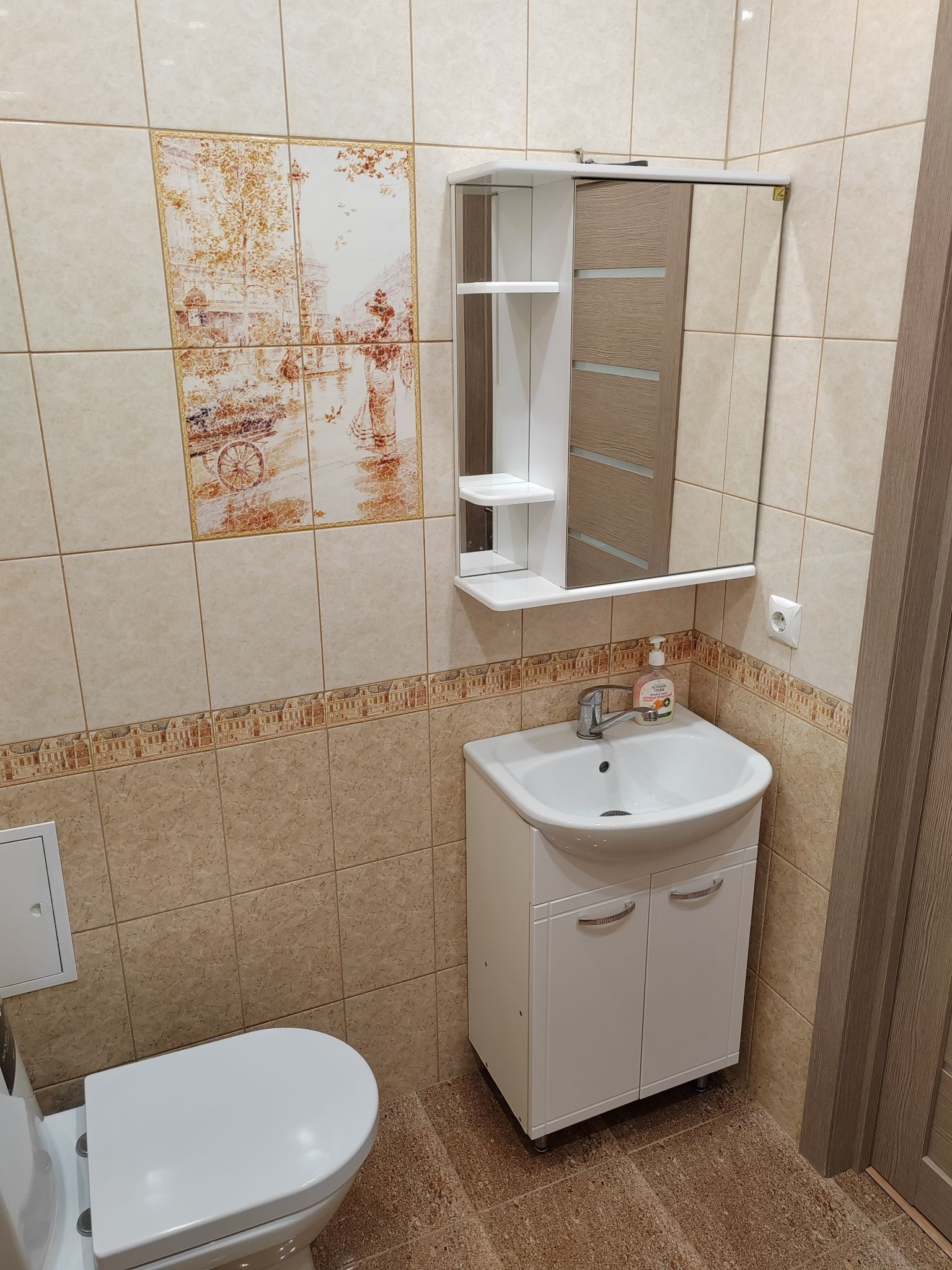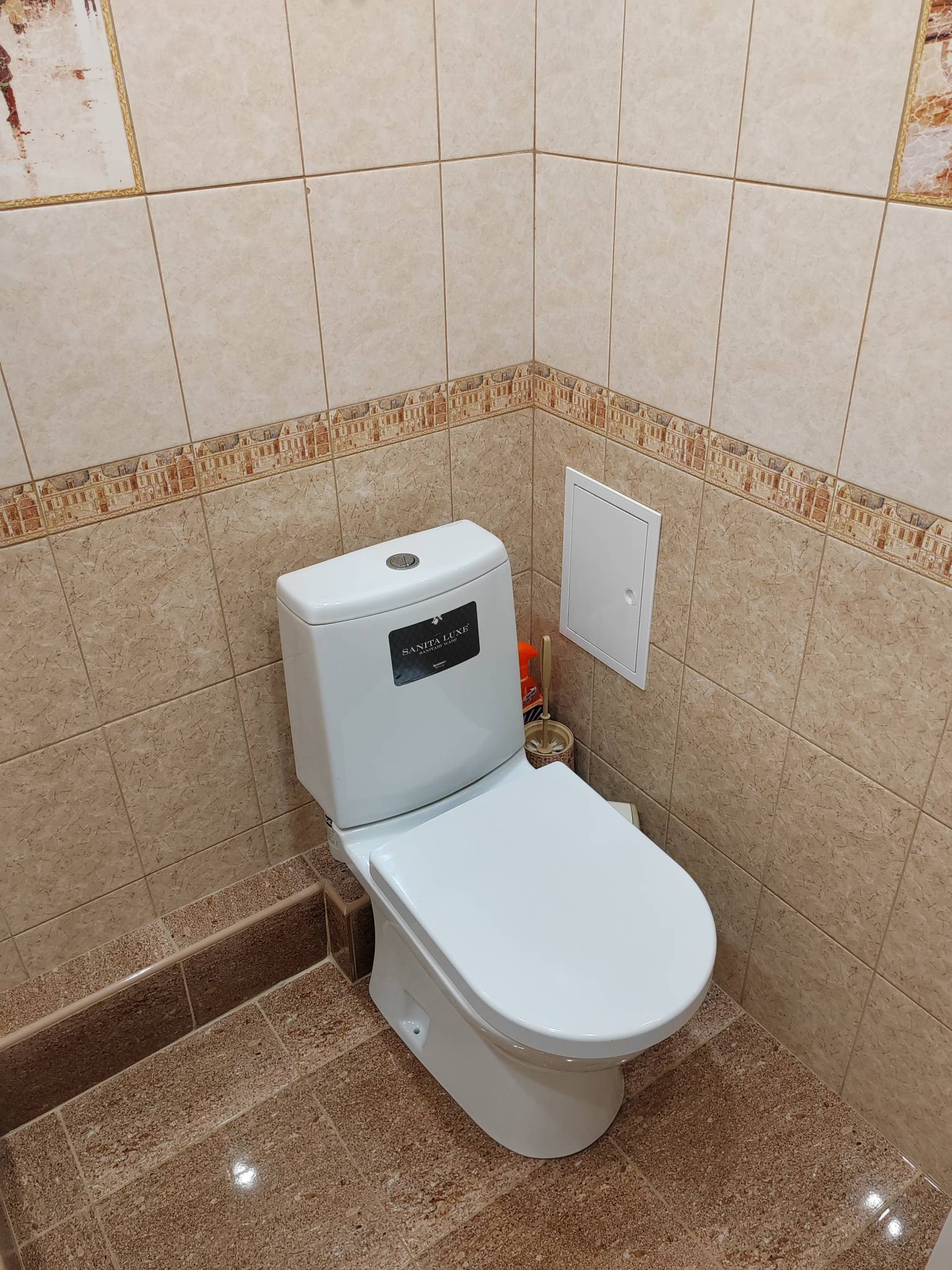 Санузел - стены и полы в керамической плитке.
