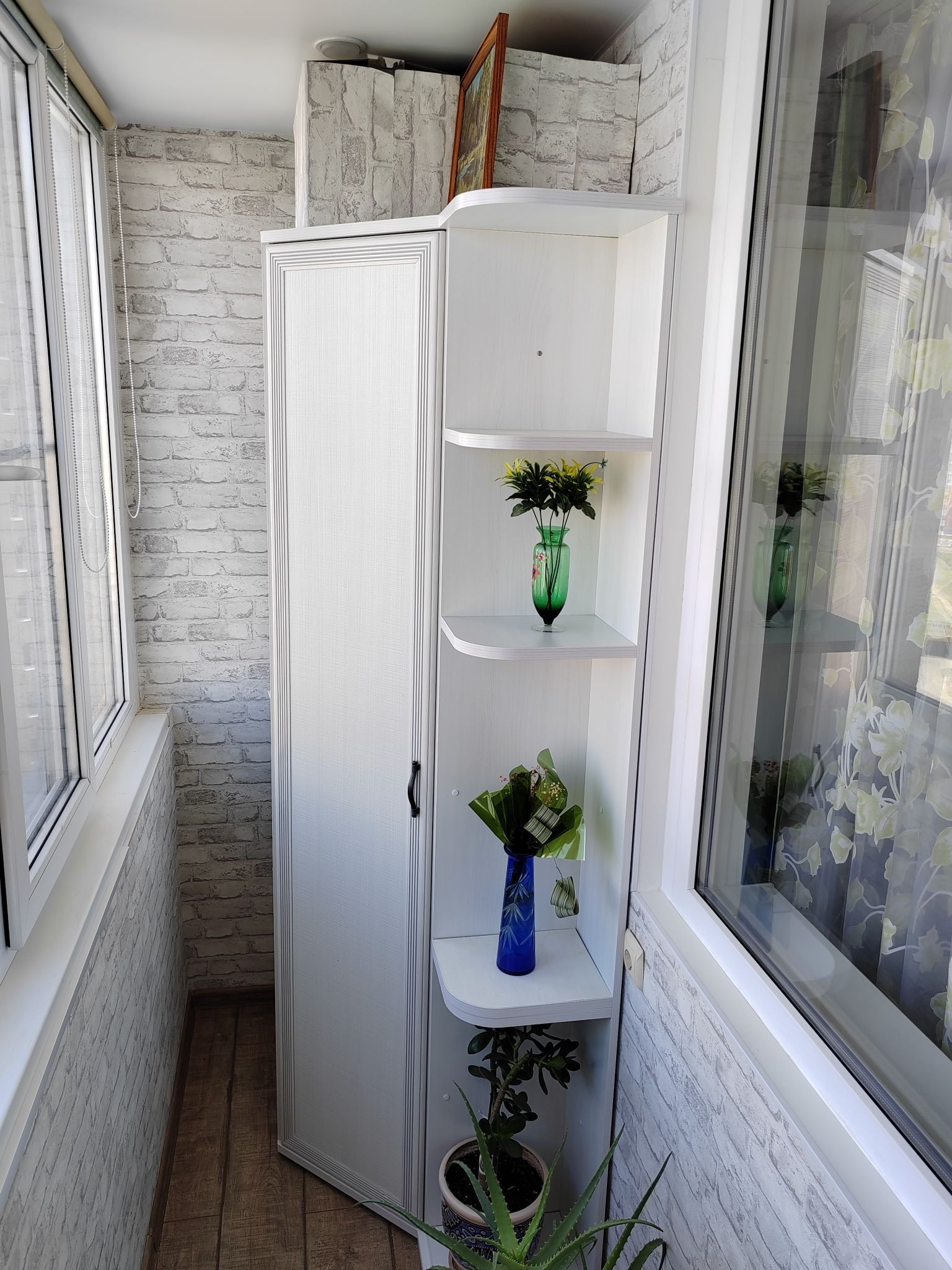 Полы - ламинат в жилой зоне, в ванной-плита, коридоре и на лоджии - ламинат.