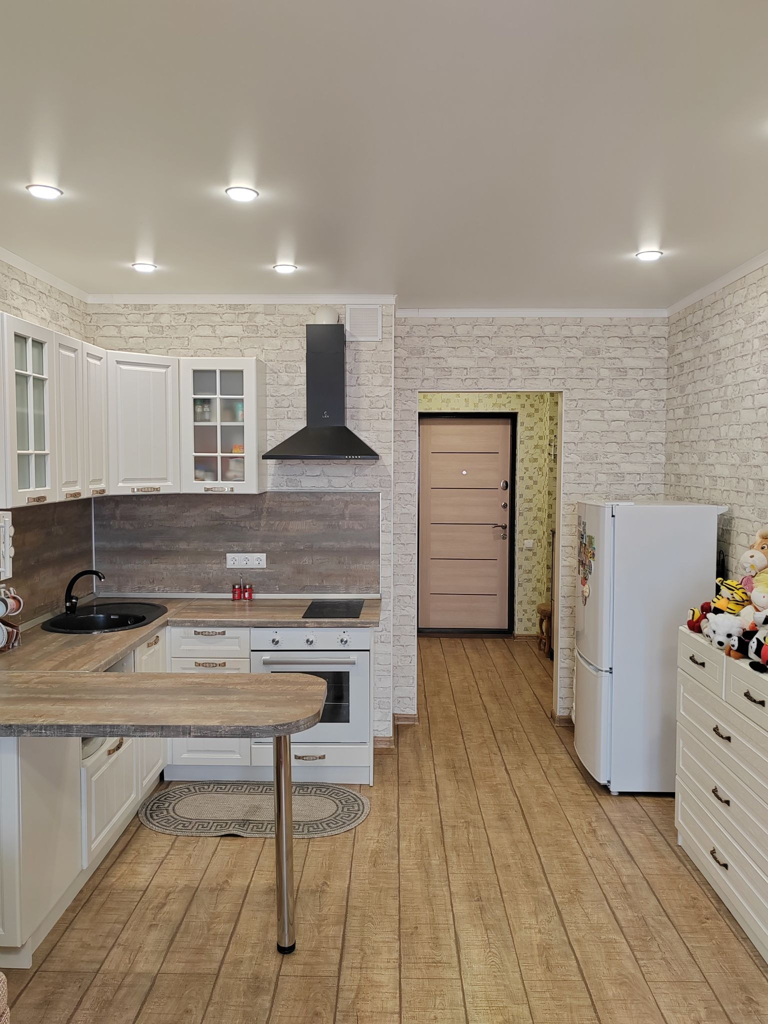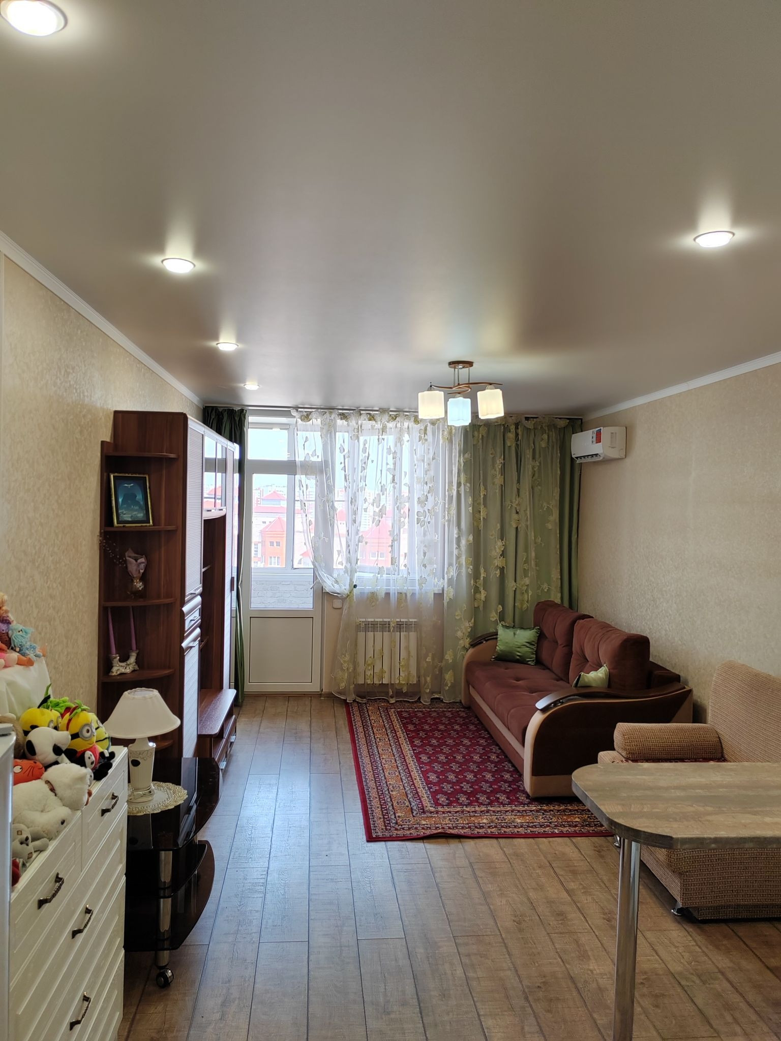 Потолки - натяжные с точечными светильниками везде, включая лоджию.