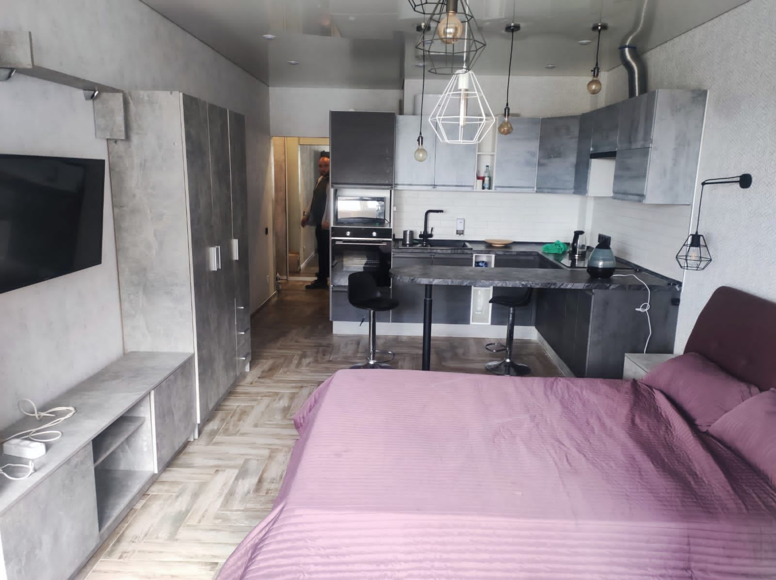 Квартира с современным, качественным ремонтом. Установлен дорогой кухонный гарнитур, индукционная плита. По всей студии теплые полы, отдельные терморегуляторы на каждую зону.