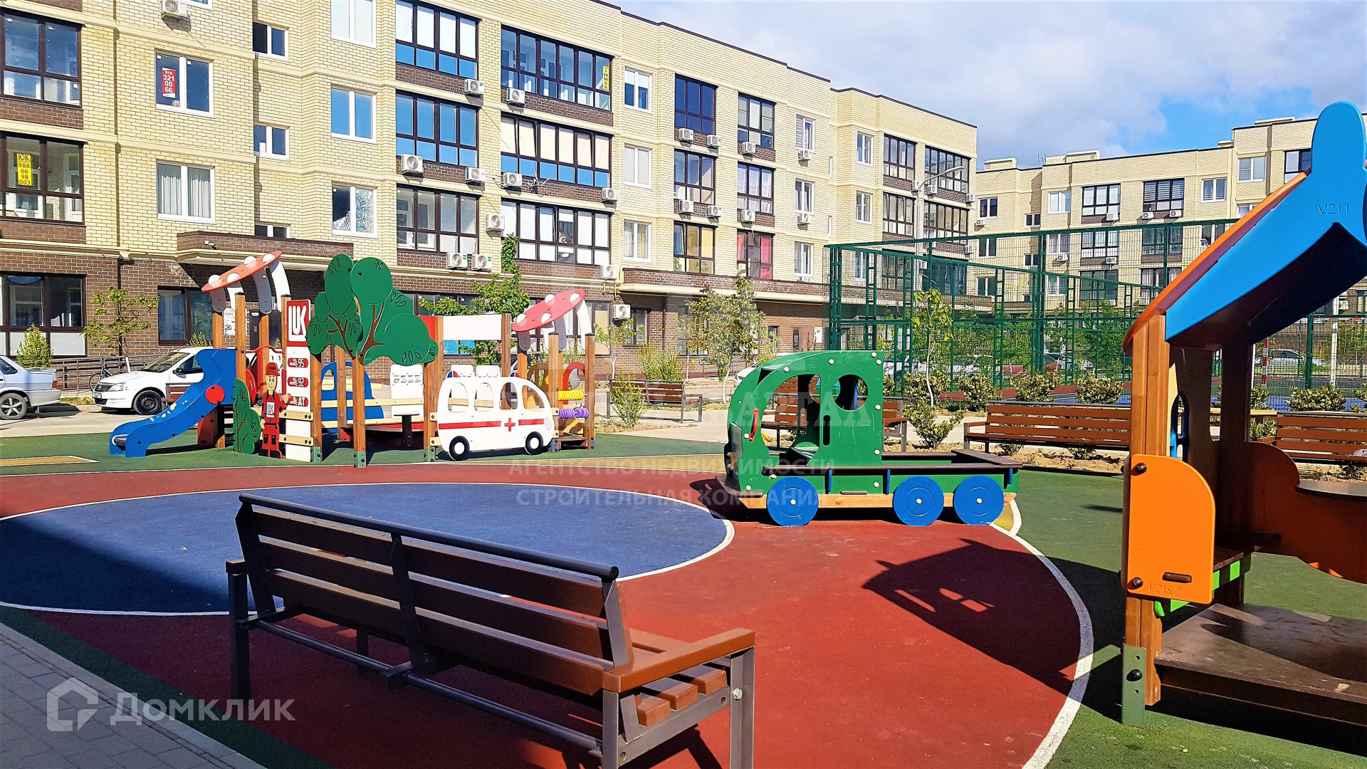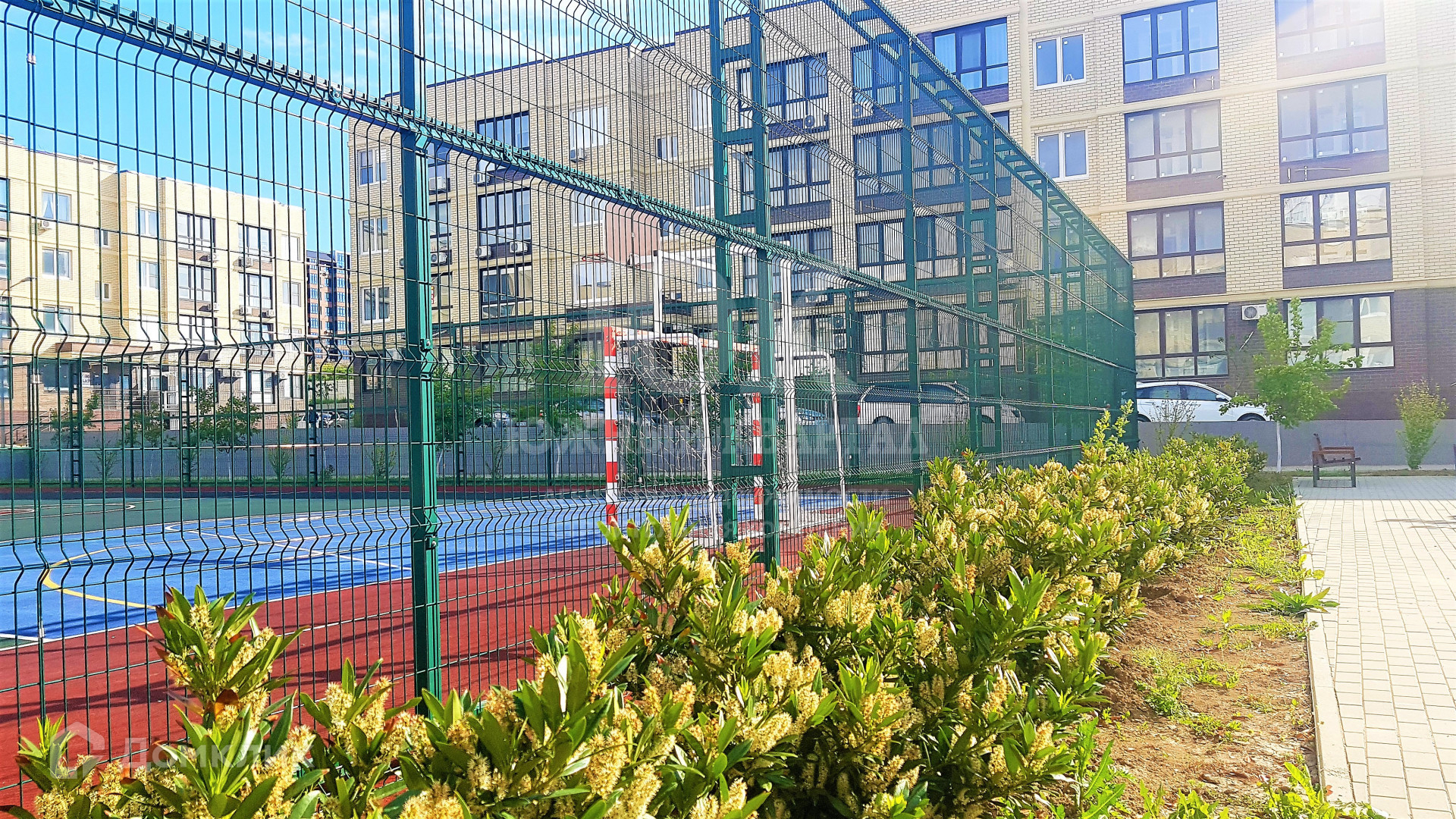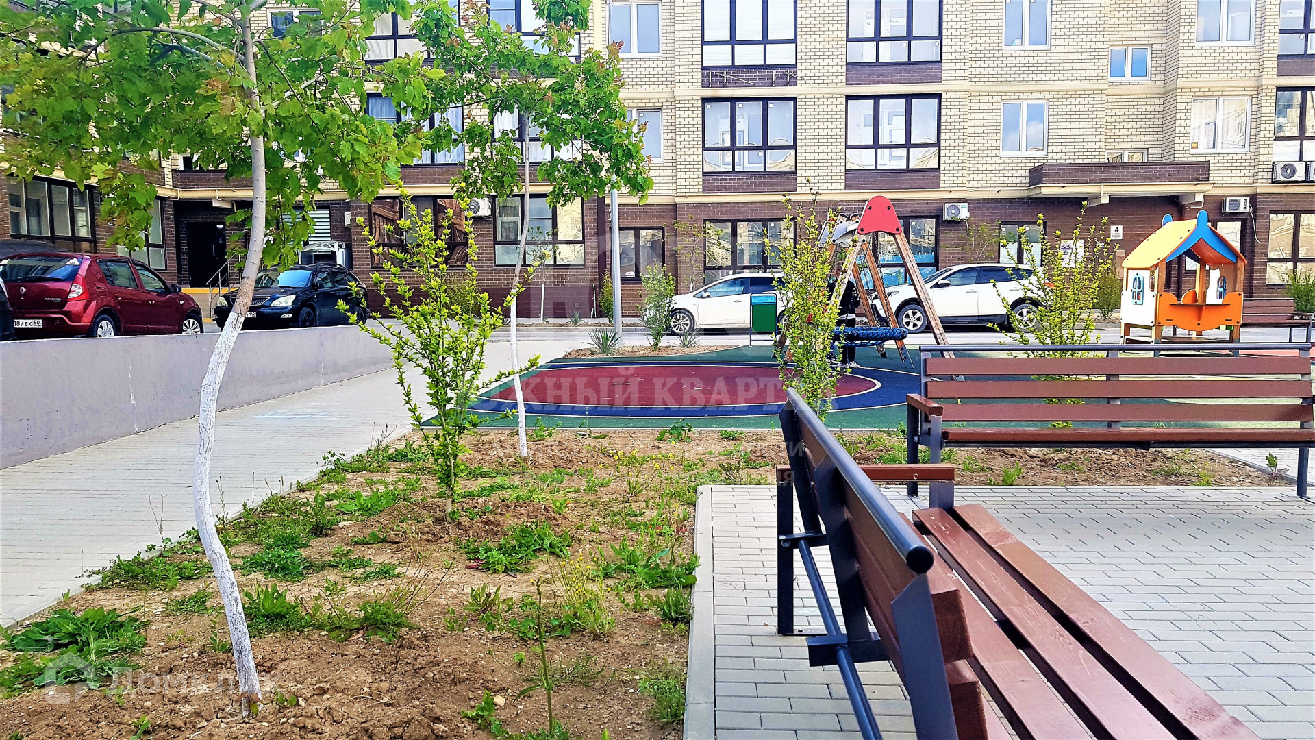 - Во дворе устроены многофункциональные яркие, безопасные детские и спортивные площадки, продуманы зоны отдыха и озеленения