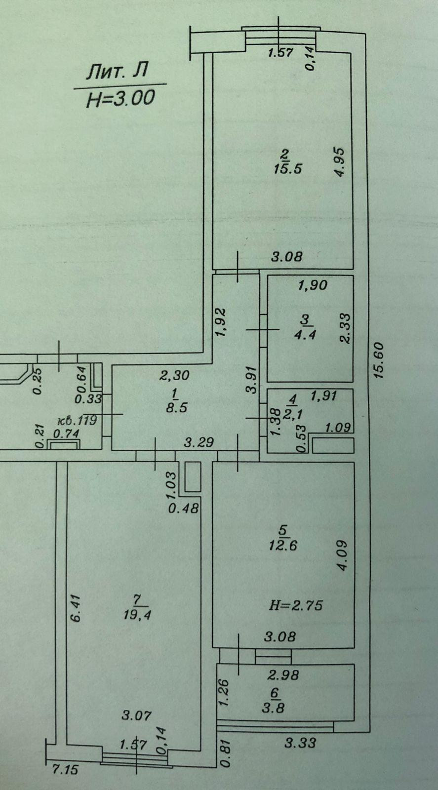 Высота потолков 2.75 м