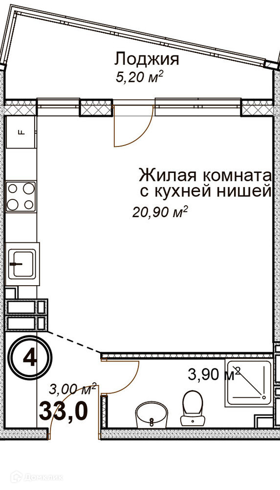 Общая площадь 33 м2