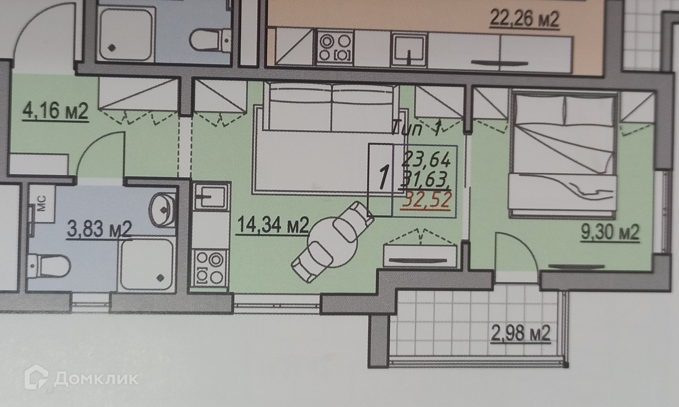 Общая площадь 36 м2