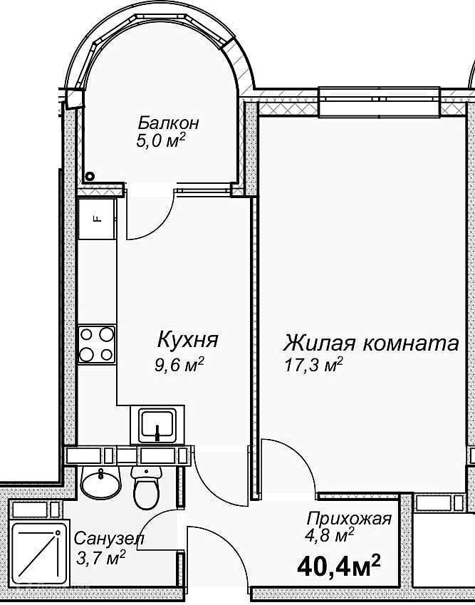 Общая площадь 40 м2