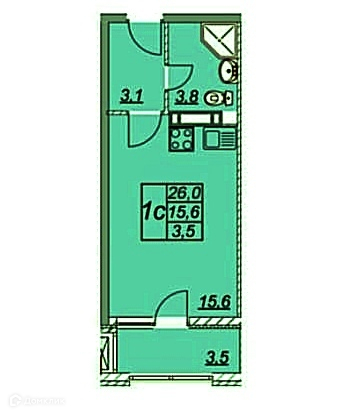 Общая площадь 26 м2