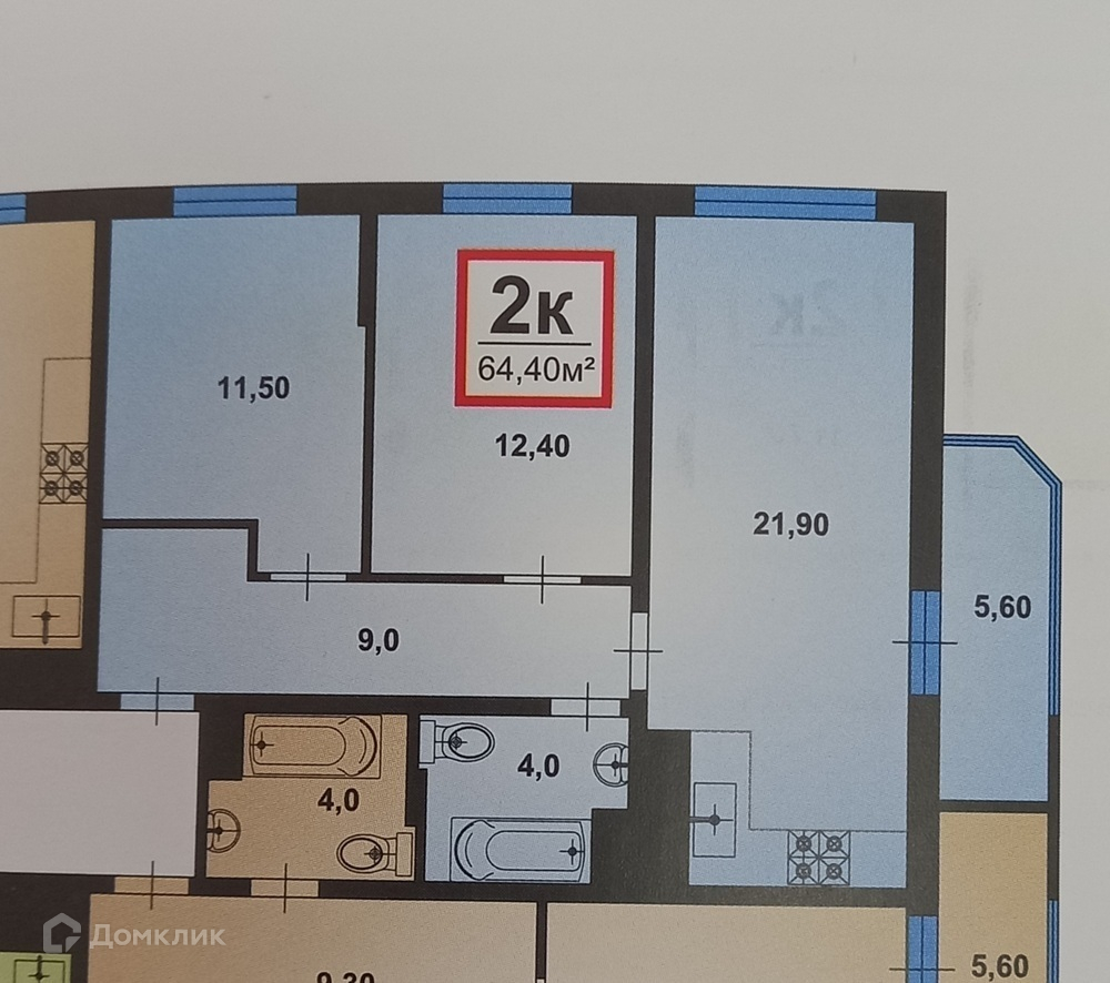 Общая площадь 64.4 м2