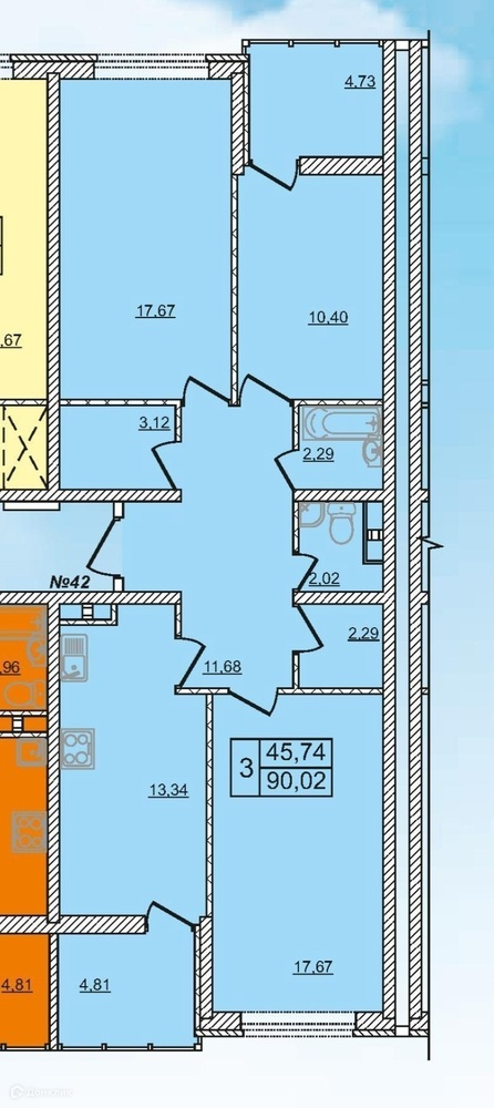 Общая площадь 90 м2